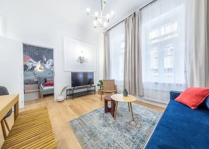 The spacious 79 m² Ruby 3-Bedroom Best Location Budapest apartment lies only 0.7 km from the Budapest Eye observation wheel and around 10 minutes on foot from Bajcsy-Zsilinszky út tube station. The 2-bedroom apartment features a patio that overlooks the city.